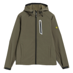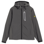 Giacca softshell, 3 tasche zippate frontali di cui una sul petto, dettagli rifrangenti, cappuccio regolabile. Polsini regolabili. Water column: 3000 mm. Wind resistance: 3000 mvp