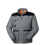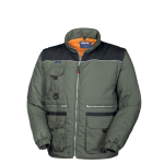 Portacellulare chiuso con aletta e velcro applicato al petto destro, due tasche a filetto chiuse con cerniera, due tasche inferiori applicate chiuse con aletta e velcro con tasche scaldamani laterali, una tasca interna a sinistra chiusa con velcro.